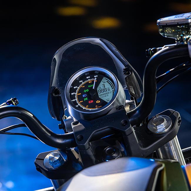 Το στρογγυλό σχήμα και η οθόνη μηχανικού τύπου, προσδίδουν μια πινελιά κλασικής εμφάνισης ενώ ταυτόχρονα η εξαιρετική ψηφιακή οθόνη LCD εξασφαλίζει καθαρή αναγνωσιμότητα για τους αναβάτες.